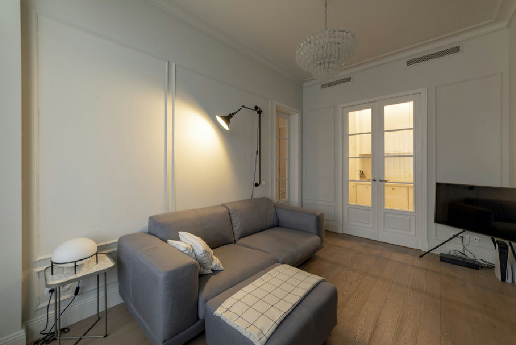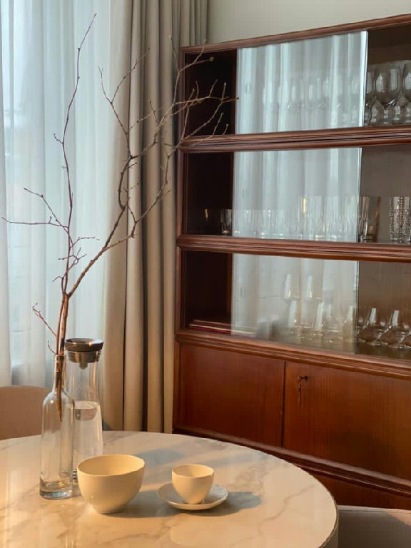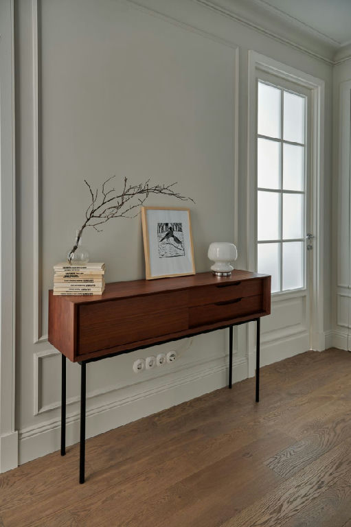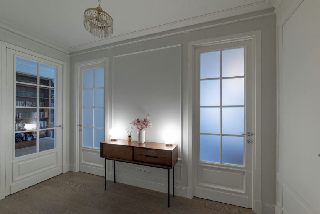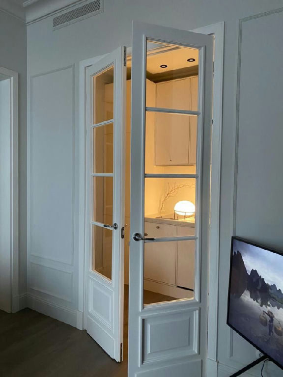 - Дизайнерский ремонт, Использовались только качественные, дорогостоящие материалы и техника: окна - деревянные стеклопакеты, техника Neff, Liebherr, стиральная и сушильная машина Miele, встроенное кондиционирование (без блоков, висящих в комнате, с абсолютно бесшумной работой), гипсовая лепнина. Мебель пр-ва Италии, Дании, Франции, винтаж, эксклюзивные столярные решения. Двери высотой 2.20 м, изготовлены по дизайну дизайнера. Идеальное состояние квартиры, множество мест для хранения вещей.