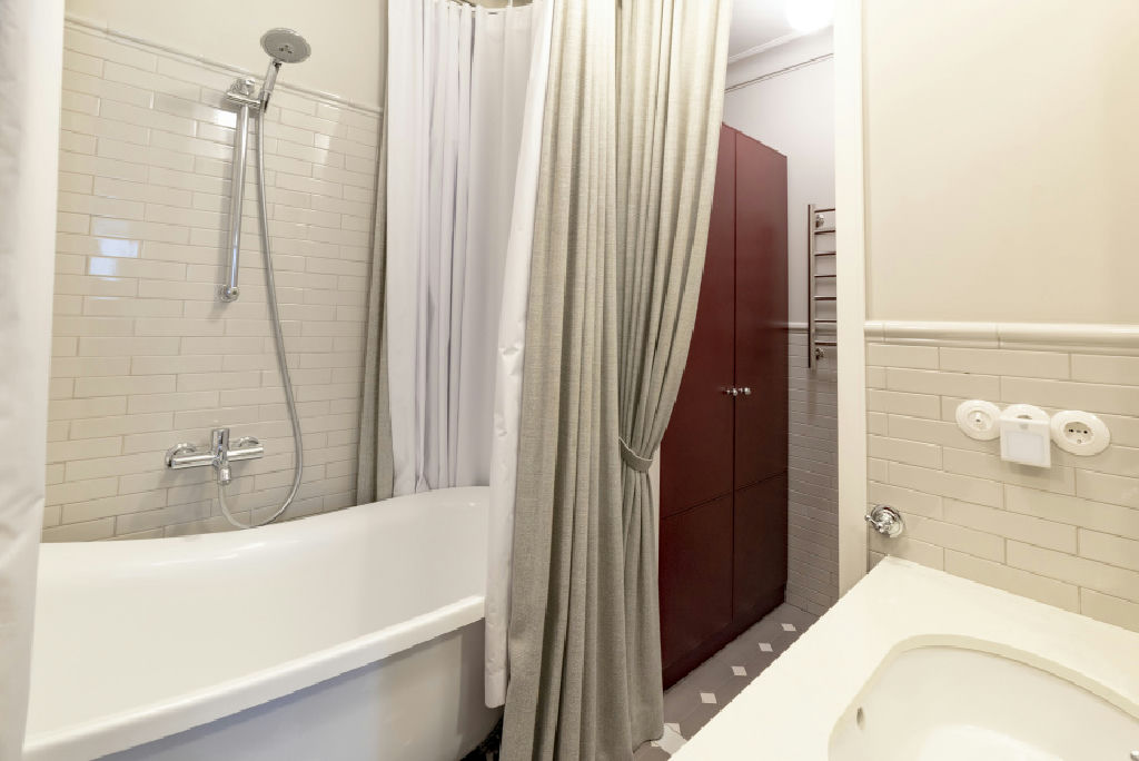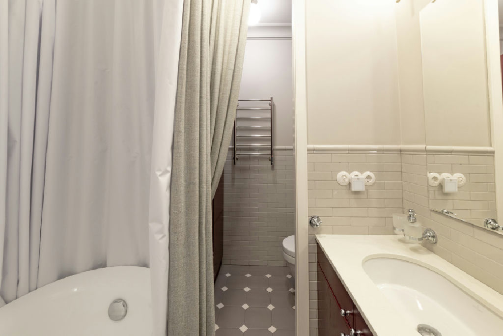 - Санузел совмещенный с ванной, унитаз спрятан в нише (сантехника Villeroy&Boch)