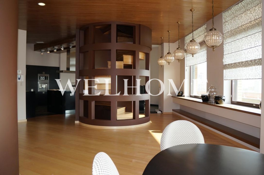ID объекта на сайте Welhome: G-5105. На продажу предлагается трехуровневый пентхаус с отделкой и мебелью в стиле современная классика.Функциональная планировка:1-й уровень: гостиная, мастер-спальня с собственными санузлом и гардеробной, 2 детские комнаты с санузлами, зона отдыха, гостевой санузел, хозяйственные помещения.2-й уровень: кухня-столовая, зона отдыха, санузел.3-й уровень: 2 изолированные комнаты, санузел, хозяйственные помещения.В отделке использованы дорогостоящие материалы ведущих производителей.Пентхаус полностью меблирован, укомплектован необходимой бытовой техникой и готов к комфортному проживанию.Из окон открывается вид на город.Высота потолков 3,7 м.В стоимость включены 3 машиноместа в подземном паркинге.Комплекс состоит из 3-х корпусов переменной этажности высотой от 14 до 22 этажей, объединенных в единое целое подземным паркингом. Современный облик, витражное остекление, дизайн и отделка вестибюлей и холлов выполнены с применением высококачественных материалов. На верхних этажах каждого корпуса расположены зимние сады, лоджии и балконы остеклены. Архитектурные формы и расположение всех корпусов выбраны с учетом особенностей ландшафта и наилучших показателей по инсоляции.